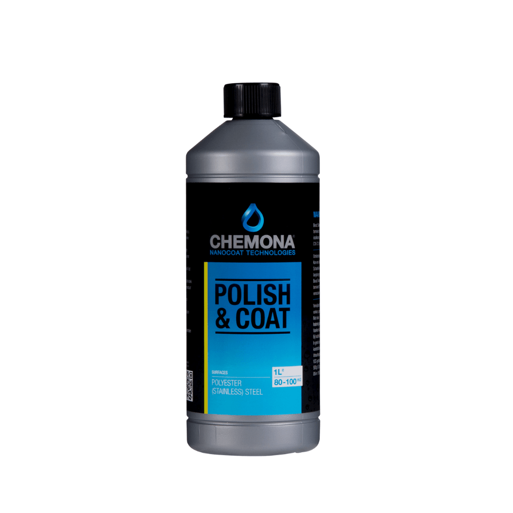 Polish & Coat ist ein vorbeugender und korrigierender Schutz gegen Alterung, Vergilbung und Kreidung vieler Materialien. Es ist hochgradig UV-beständig. Polish & Coat reinigt und versiegelt in einem Arbeitsgang. Es enthält eine hohe Konzentration an Nanopartikeln zur Reinigung und Beschichtung von Oberflächen wie Gelcoat, Acryl, Eisenmetallen, Chrom, Edelstahl, Kunststoffen und lackierten Materialien.